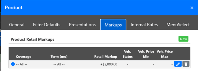 Note: All Markup Operations can be overridden by the finance manager on the fly within a deal as needed.