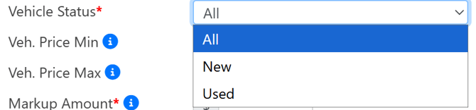 - Vehicle Status: You can choose to have the markup apply to all units or only new vs. used.