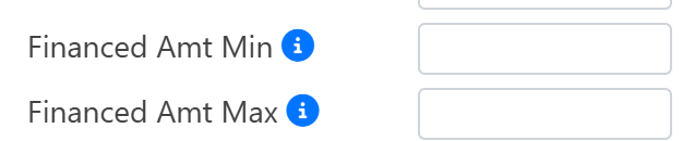 If you want a markup to apply to any financed amount between $0 and $25,000, enter 0 in the Financed Amt Min field and 25,000 in the Financed Amt Max field.If you want to apply an additional markup to financed amounts above this initial range, you can create a second bracket. To do this, enter 25,001 in the Financed Amt Min field and specify the upper limit of the next range in the Financed Amt Max field.